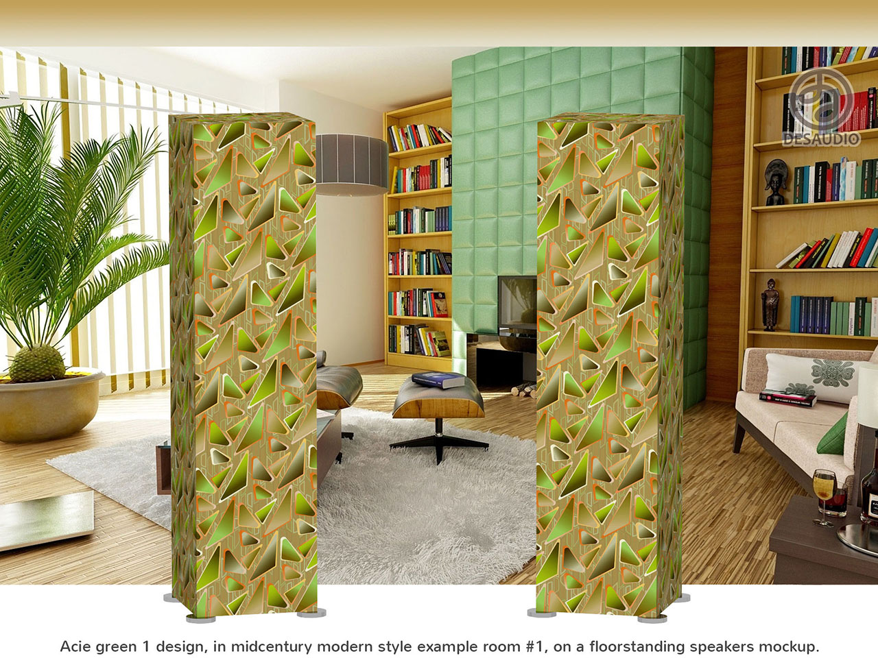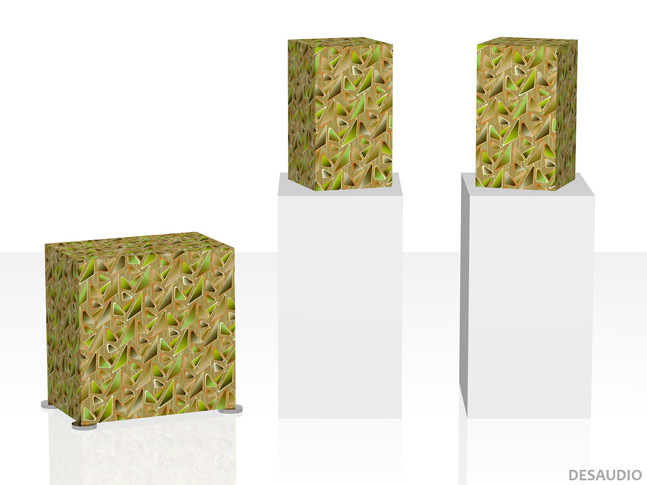 As this pattern is seamlessly continuous and not created for a speaker of a particular dimension, then this pattern can be executed on any type of box-shaped speaker: Vertical floorstanding tower speakers, smaller standmount/bookshelf speakers, cube-formed subwoofer speakers, and horizontal center channel speakers in home cinema sets.