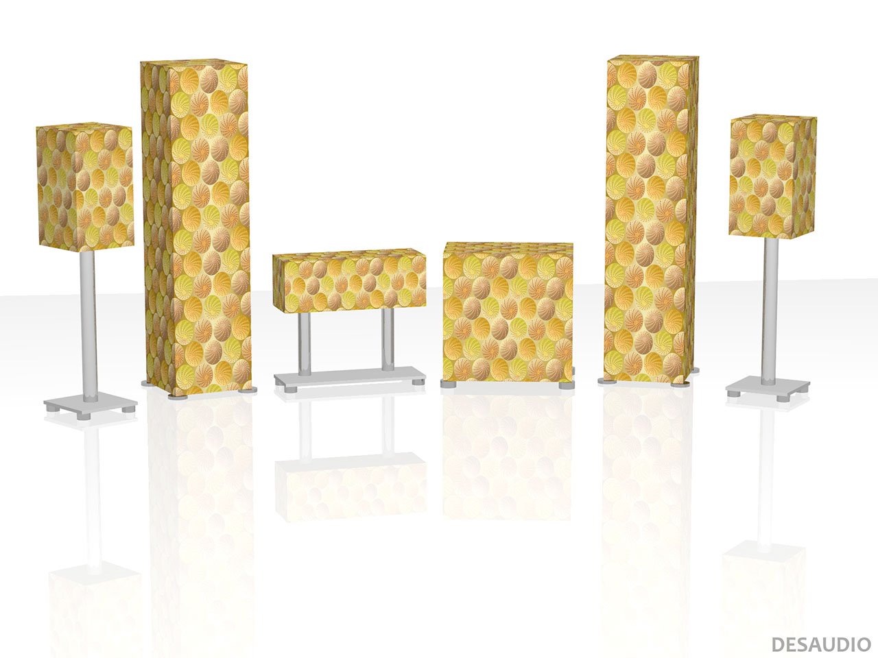 As this pattern is seamlessly continuous and not created for a speaker of a particular dimension, then this pattern can be executed on any type of box-shaped speaker: Vertical floorstanding tower speakers, smaller standmount/bookshelf speakers, cube-formed subwoofer speakers, and horizontal center channel speakers in home cinema sets.