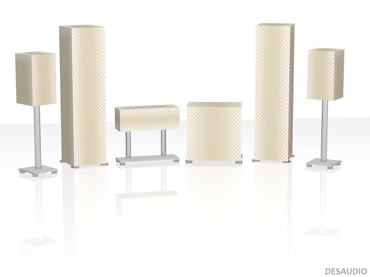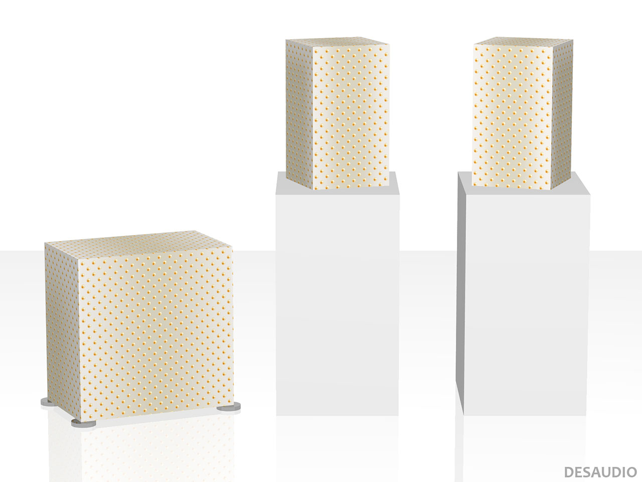 As this pattern is seamlessly continuous and not created for a speaker of a particular dimension, then this pattern can be executed on any type of box-shaped speaker: Vertical floorstanding tower speakers, smaller standmount/bookshelf speakers, cube-formed subwoofer speakers, and horizontal center channel speakers in home cinema sets.